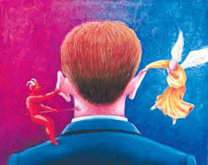 شیطان از خارج به عنوان یک عامل بیرونی و نفس انسان